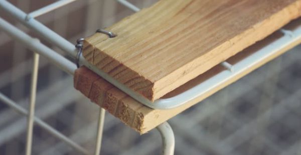 Comece medindo e decidindo quantos cubos de arame você vai precisar para fazer a sua estante e deixe o tampo de madeira com esta medida. Então pegue os pedaços menores de madeira e fixe, com arame, e com o auxílio do alicate, na parte superior de sua estante, parte onde o tampo de madeira será colocado.