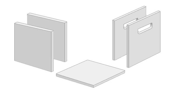Em seguida, corte os pedaços de papelão para montar as suas caixas, e em duas partes de cada caixa, faça um corte para ser a alça, na parte superior da peça.