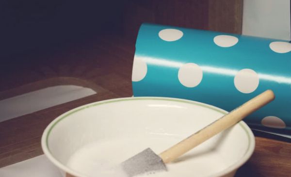 Logo após, despeje a tinta no recipiente e encape as caixas com o papel colorido ou estampado.