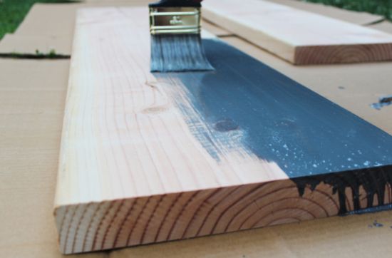 Comece pintando os pedaços de madeira que você irá utilizar em sua estante com a cor de sua preferência e com o auxílio do pincel. E aqui você pode fazer a pintura de acordo com a sua preferência, como deixando a cor bem uniforme e com tonalidade bem forte ou apenas aplicando uma camada de tinta, para que a cor fique bem apagada e o estilo rústico se sobressaia.
