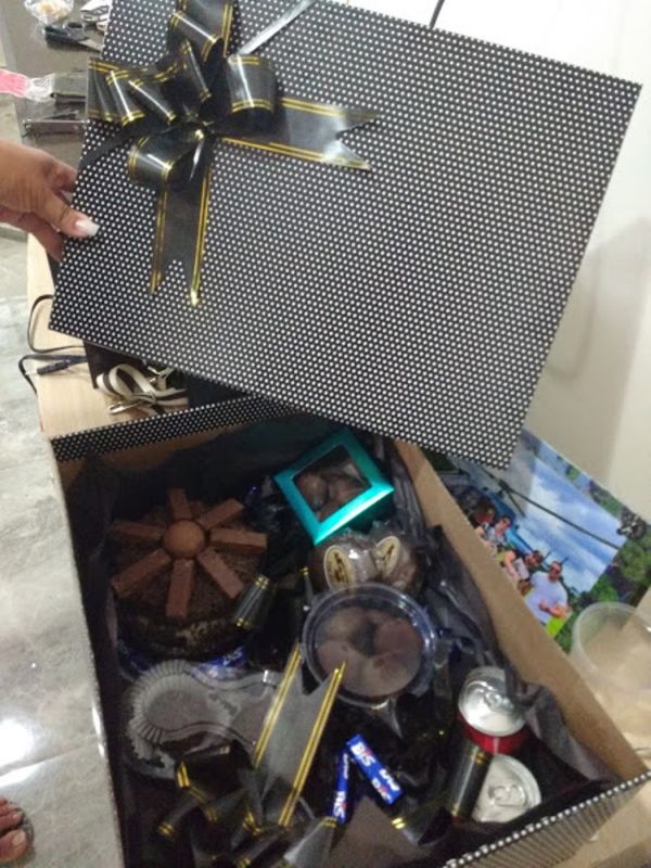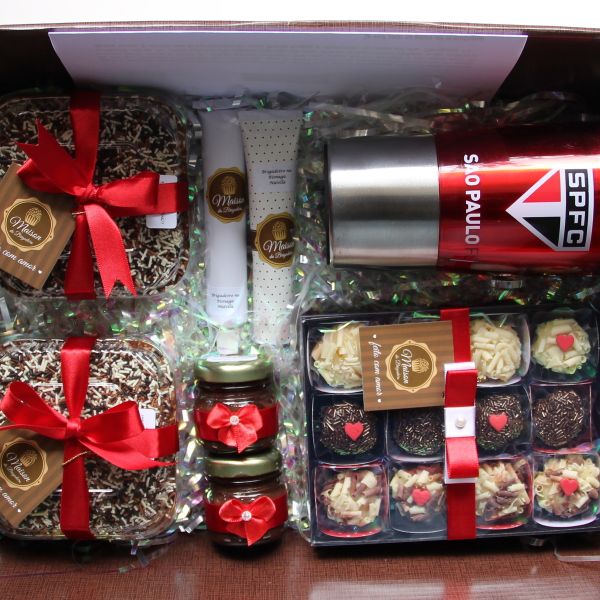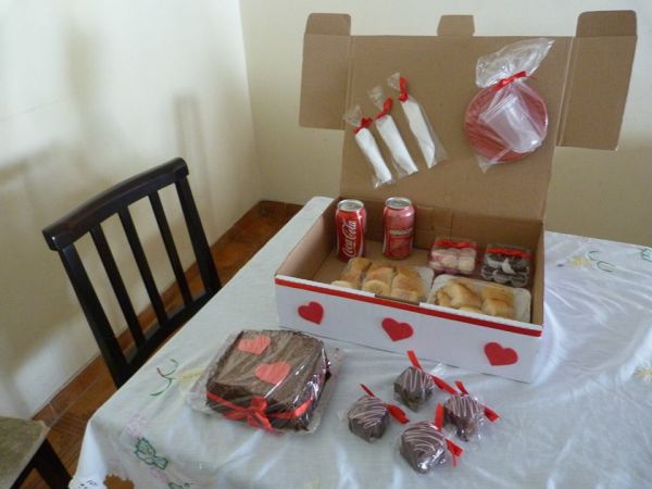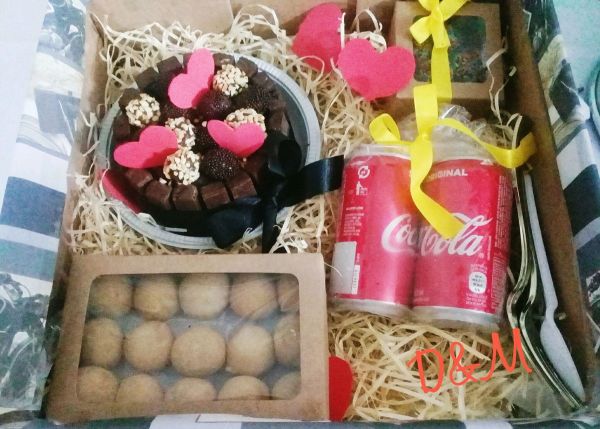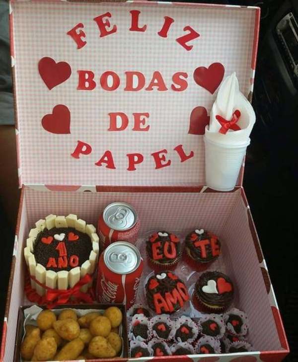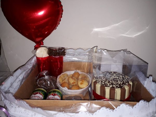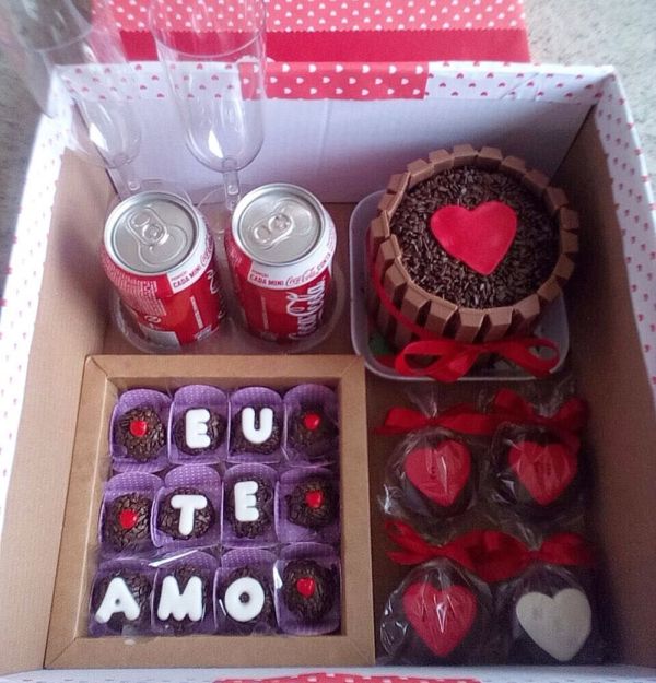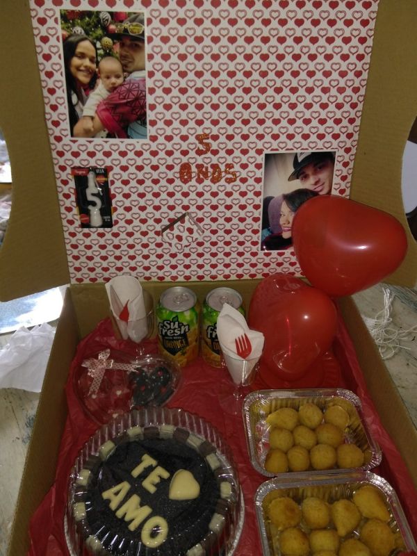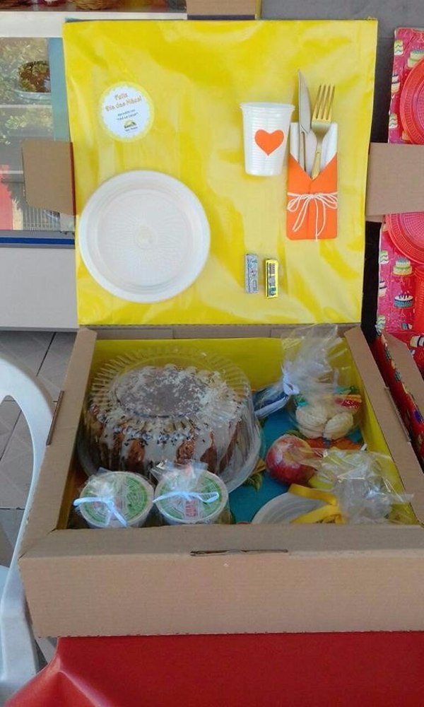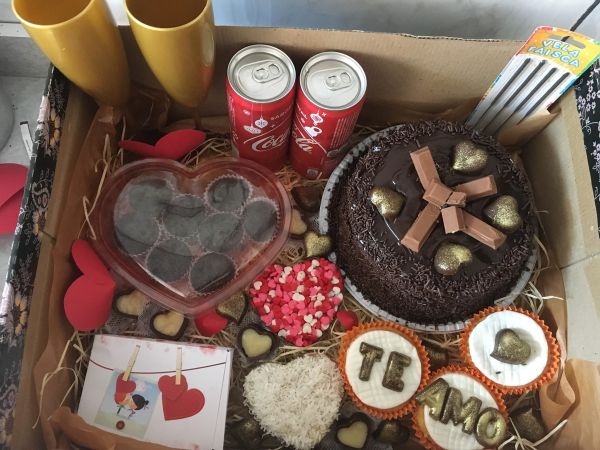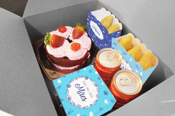 A ideia base é muito boa e dependendo dos complementos que você acrescentar à sua caixa, ficará ainda muito mais especial. Além dos alimentos, bebidas e utensílios para consumir os produtos, você também pode colocar enfeites e lembrancinhas ou um presente a mais para o alvo da sua caixinha.