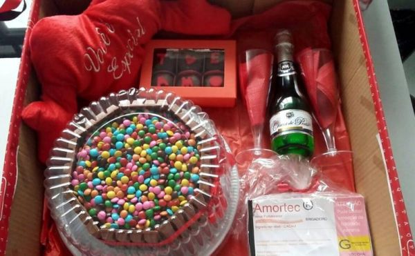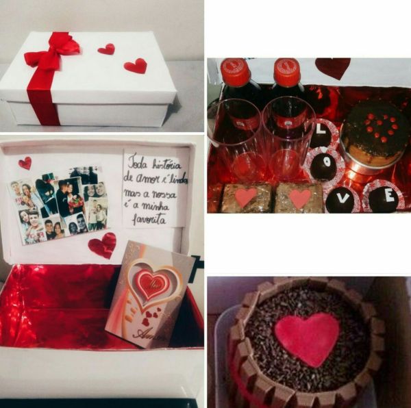 O primeiro passo é escolher uma caixa, que pode ser a que você desejar, fazer um teste para ver se todos os itens que você quer colocar dentro vão caber na caixa e, por último decorar esta caixa. Então, basta ir colocando os produtos dentro da peça. Coloque outros presentes ou uma lembrancinha que marque a vida de vocês ou seja uma paixão do seu amor.