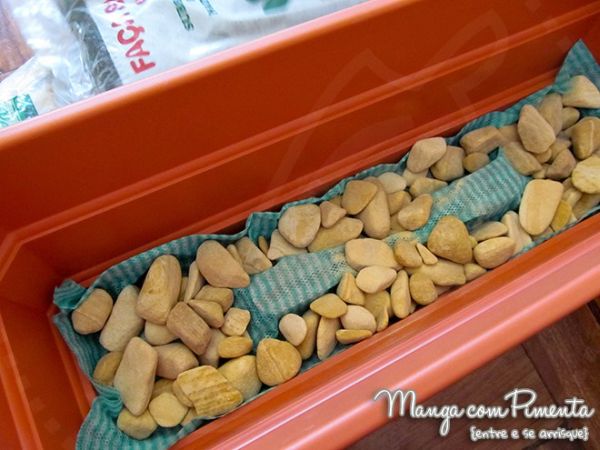 Agora que você já preparou a base do seu vaso comece a colocar a terra dentro dele.