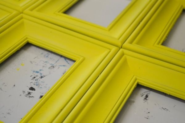 Em seguida, cole as seis molduras, uma à outra, com o auxílio da pistola de cola quente. Deixe a cola secar.