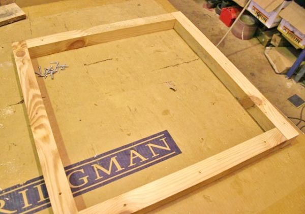 Comece uma estrutura com os pedaços de madeira e com o mesmo tamanho da pallet escolhida.