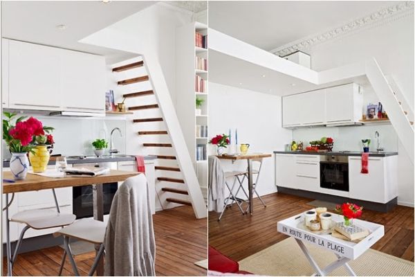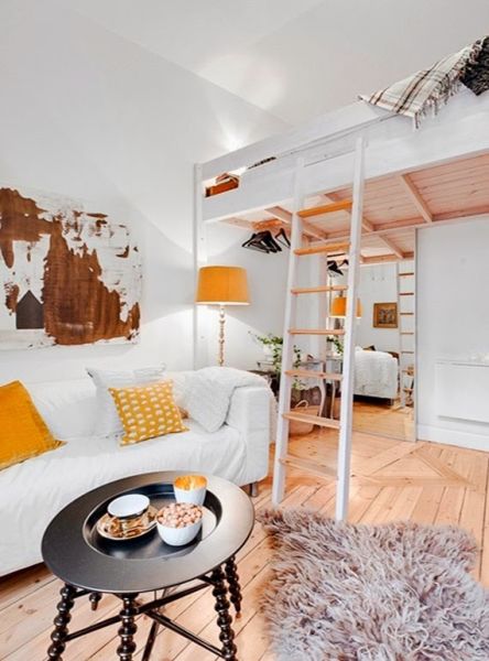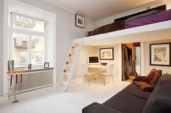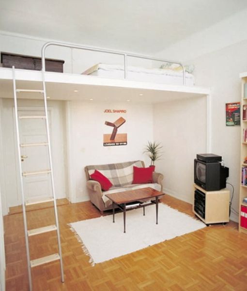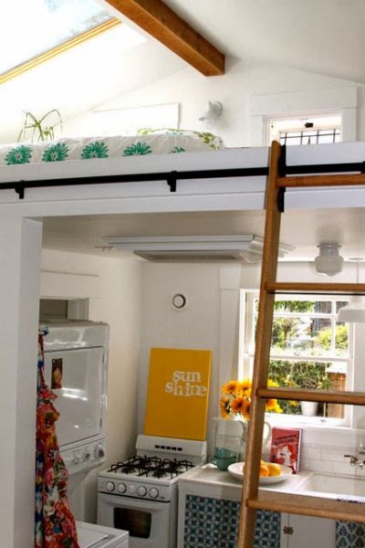 Se a sua casa é muito pequena ou se você mora em um apartamento com espaço ínfimo, porém precisa muito de um local para acomodar mais uma cama, você pode investir em uma cama suspensa em sua cozinha, caso este espaço possua pé direto alto, que permita acomodar a cama, e a pessoa consiga ficar ao menos sentada na cama sem bater a cabeça no teto.