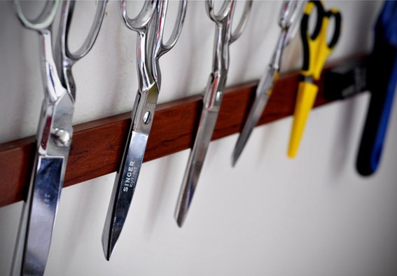 Entre as 13 ideias de decoração para quartinho de costura você também pode investir em faixas imantadas, para segurar suas tesouras e outros itens grandes de metal. Pode também apostar nos mais diversos itens para servirem de base para organizar o seu espaço, como até mesmo potes de plástico para cozinha, por exemplo.