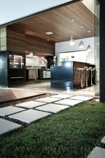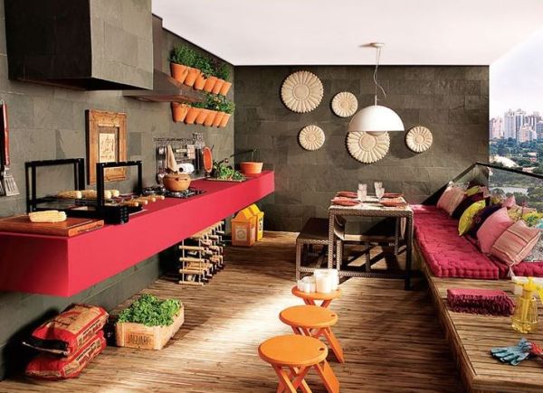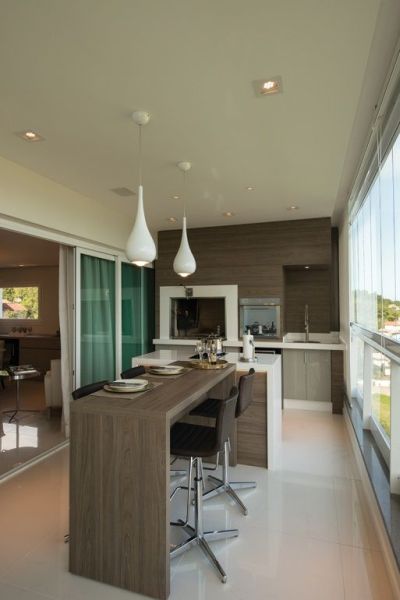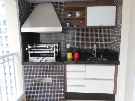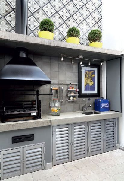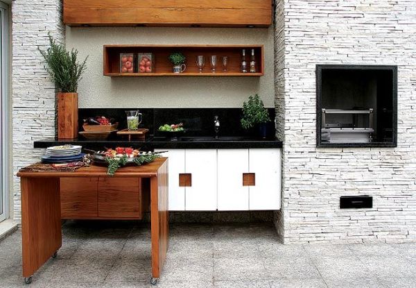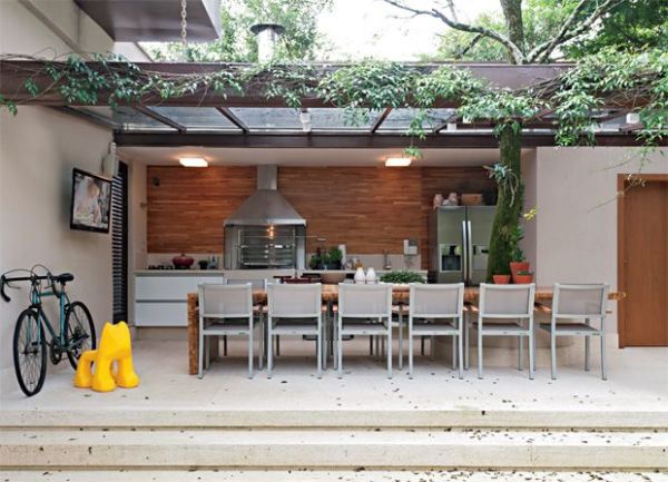 Você também pode mesclar materiais diversos e compor um espaço com visual bem interessante em seu espaço com churrasqueira.