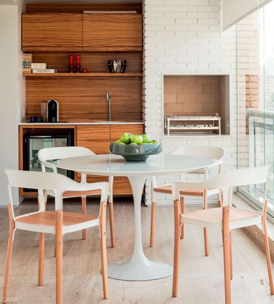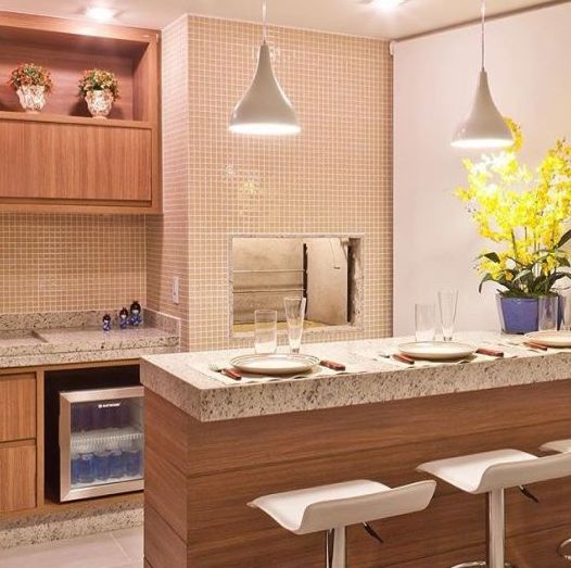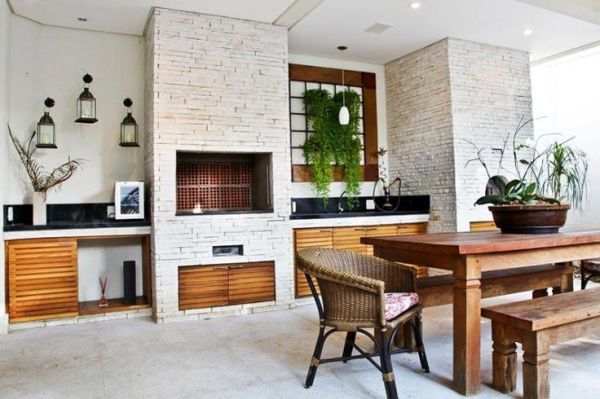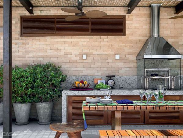 O tijolo é o item mais clássico e utilizado na área da churrasqueira. Além de ser durável e possuir uma ótima qualidade, o tijolo pode ser empregado em diversos estilos, como por exemplo, estar presente tanto no estilo rústico quanto no estilo mais simples, porém interessante, com uma pintura colorida ou branca.