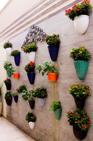 Vasos que possuem modelos planos na parte detrás, que são específicos para muros, são perfeitos para quem quer montar um jardim vertical mais moderno e diferenciado.