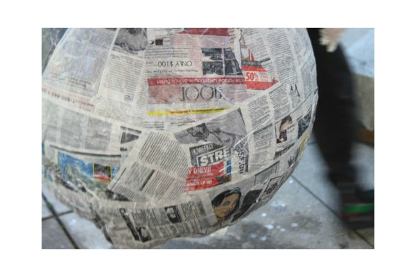 O jornal deve ser molhada na água com cola.