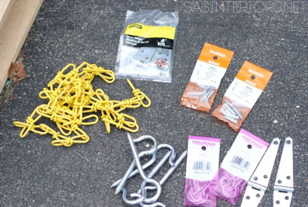 Agora, fixe o pedaço de corrente de forma que sustente o ângulo de 90 graus da dobradiça. E se você quiser, pode pintar a corrente ou comprar uma corrente colorida, ou utilize uma corrente tradicional.