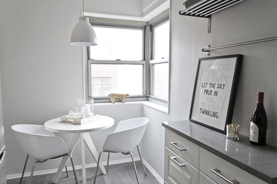 Espaço mínimo para a sua cozinha também não precisa ser desculpa para descartar uma mesa para realizar as suas refeições, pois atualmente há lindos modelos de mesinhas bem pequenas que conseguem se acomodar facilmente em qualquer cantinho.