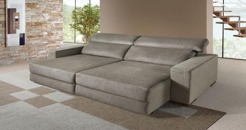 Este sofá é ideal para assistir filmes. Tem o encosto aumentado e sua forma retrátil deixa o sofá maior. Apoio para as pernas e cabeça, fazem desse sofá um grande motivo para ficar em casa em dias de chuva e frio.