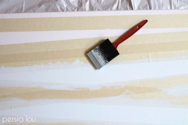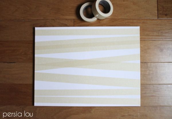 Comece posicionando pedaços de fita adesiva sobre a tela, nas posições que você quiser e formando listras com as espessuras e formatos que você quiser.