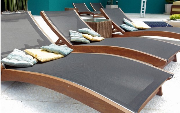 As espreguiçadeiras para bronzeamento foram colocadas em várias partes da área externa, facilitando o acesso dos jogadores.