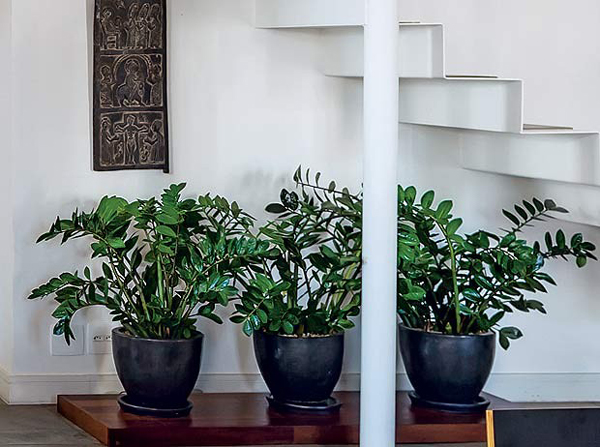 A zamioculca faz parte daquele grupo de plantas de sombra total, pois em contato com a luz solar as folhas podem queimar. A rega não precisa ser constante.