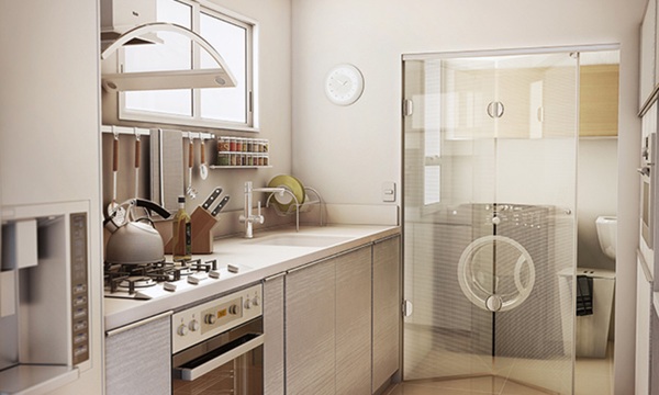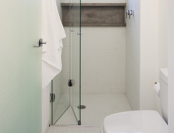 Caso o seu banheiro seja muito pequeno você pode apostar em uma porta que dobra, para economizar espaço deste cômodo.