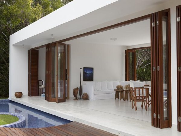 A área externa de sua casa pode ter uma porta enorme com o modelo camarão, para expor toda a parte interna do seu lar, se assim você preferir. Vale até compor um conjunto com portas com estilo camarão se quiser expor uma parte bem grande de sua casa.