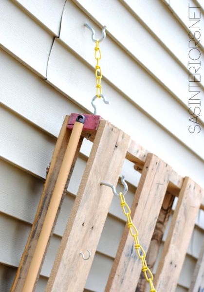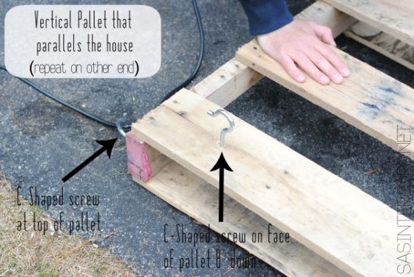 Em seguida, siga fixando os ganchos em suas pallets.