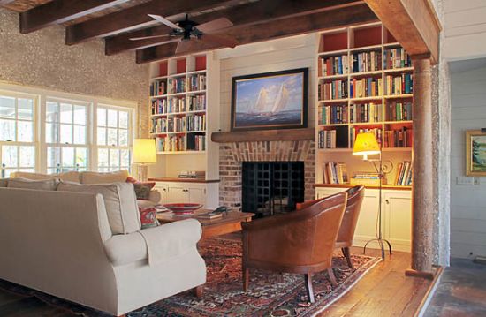 Se você for realizar um projeto de casa de campo com ambientes integrados, você pode “dividi-los” visualmente utilizando peças e elementos de decoração, como tapetes, poltronas e cortinas.