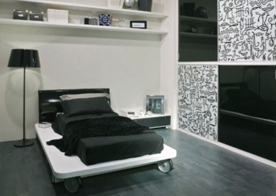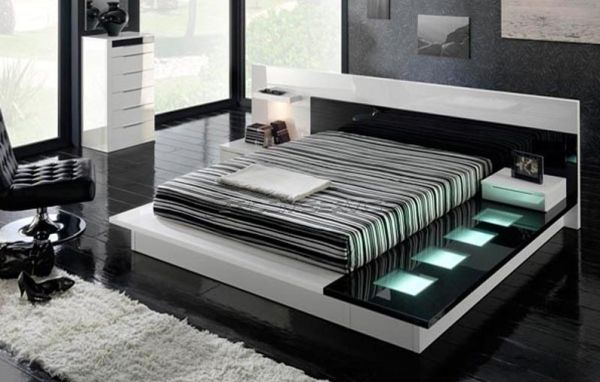 Caso você queira quebrar um pouco o estilo de decoração somente com o preto e branco, mas não quer destoar muito toda a decoração, você pode investir em objetos com tonalidades escuras ou claras para acrescentar ao seu quarto, como optar por camas de madeira confeccionadas com madeira mais escura.
