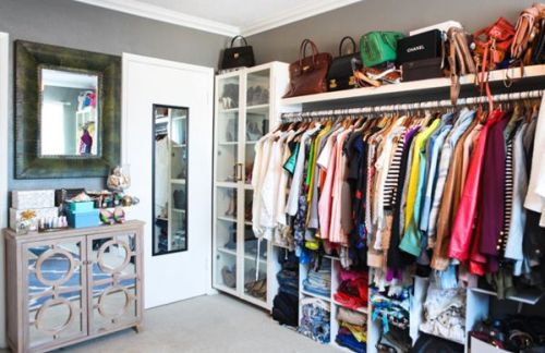Engana-se quem pensa que um closet necessita possuir armários ou portas, pois você pode incorporar apenas araras ao ambiente e deixar seus sapatos posicionados em prateleiras ou nichos específicos para este fim, porém sem portinhas escondendo-os. Apenas os acessórios necessitam de um compartimento específico para acomodá-los, mas para isso você pode utilizar caixas, gavetões ou até mesmo uma cômoda antiga ou uma mais moderninha, mas que possua algum diferencial.