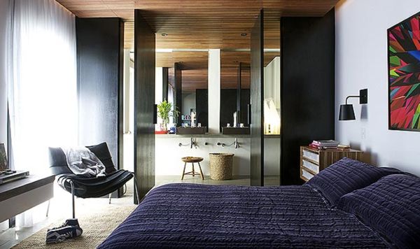Há a opção de se acrescentar uma porta ou até mesmo uma parede inteira de correr, para que quando você estiver no quarto separe os outros ambientes. E para este caso você pode optar por peças de madeira, para trazer uma sensação de aconchego e acolhimento para seu lar ou por peças de PVC ou até mesmo por peças de metal.