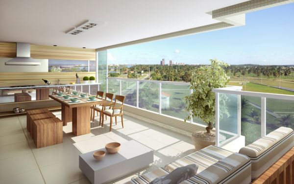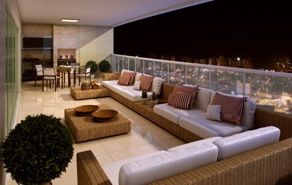 E para quem não quer vedar a varanda e quer manter o “ar livre” desta área, mas mesmo assim quer criar uma sala-varanda, pode acrescentar estofados, poltronas e toda a gama de móveis e elementos para montar uma sala. Porém é preciso escolher as peças com cuidado, pois como elas ficarão expostas às agressões do clima o ideal é escolher elementos confeccionados com materiais mais resistentes.