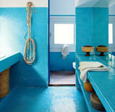 Para os adolescentes intelectuais ou que adoram ler seus gibis, livros ou revistas, vale deixar um cantinho para que ele acomode seus livros ou outros itens de leitura. E como normalmente os aficionados por leitura não se atraem muito por decoração ou itens mais sofisticados para seu espaço, você pode deixar o restante do décor do banheiro bem simples, apenas com a cor azul, para diferenciá-lo e com as peças básicas de um banheiro.