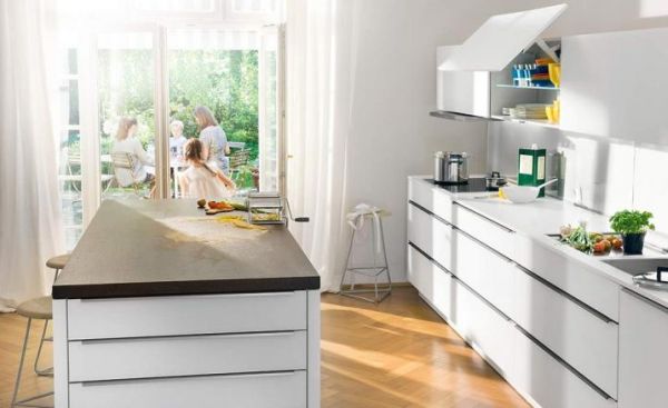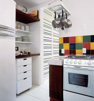 E se você usar em sua cozinha integrada alguns armários com portas basculantes, você economizará espaço útil da cozinha, além de ter também as panelas e outros utensílios de cozinha sempre à mão. Porém se você optar por cozinha americana, não se esqueça de investir também em exautores e coifas, para evitar o cheiro de fritura e a famigerada fumaça pela casa.