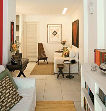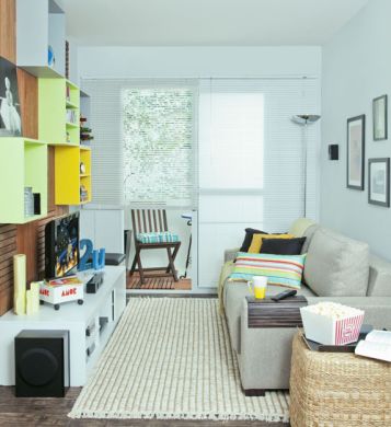 Se a sua sala for bem pequena e ainda estreita, você pode dividi-la, posicionando um sofá em frente à televisão e deixando o outro sofá do jogo posicionado em linha paralela ao primeiro sofá ou em linha reta, mas do outro lado da sala, de frente para o primeiro sofá.