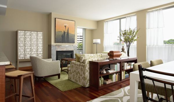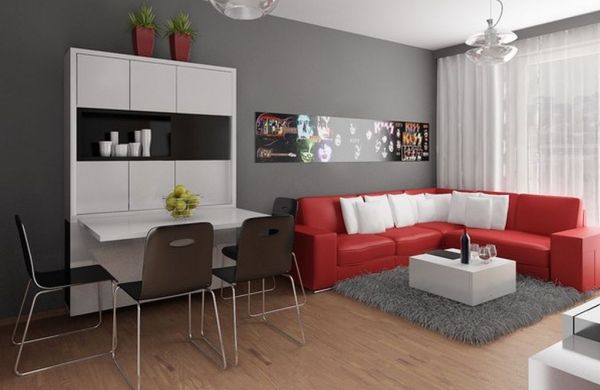 Apartamentos pequenos normalmente possuem todos os ambientes integrados, principalmente cozinha e sala, por isso o melhor que se tem a fazer é investir pesado em projetos que garantam praticidade, beleza estética e harmonia de todo o espaço. E se o espaço é muito reduzido você pode valorizar esta integração do ambiente, apostando em móveis, paredes e piso com as mesmas cores e estilo e “delimitando” superficialmente cada ambiente com algum detalhe diferenciador, como cadeiras coloridas para o balcão da cozinha americana, um tapetinho sob a mesinha de centro da sala ou simplesmente colocando um pufe ou aparador estreito entre um ambiente e outro, mas de forma discreta, sem deixar esta divisão tão impactante.