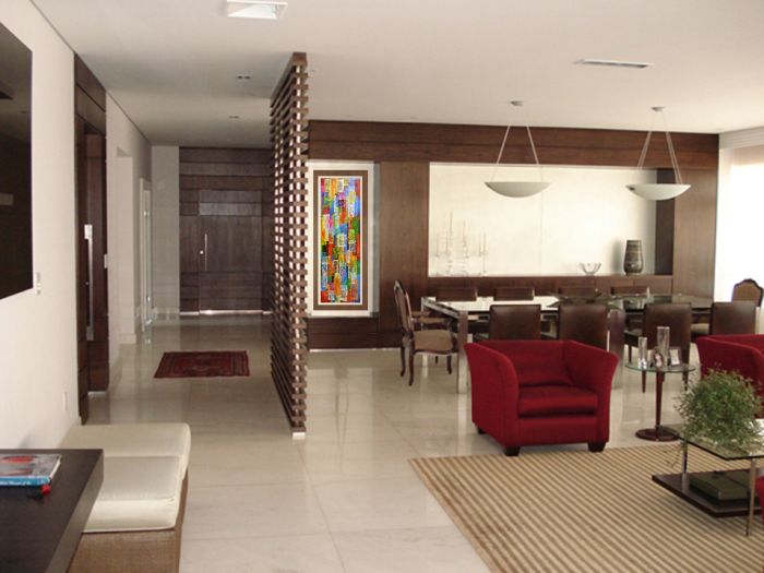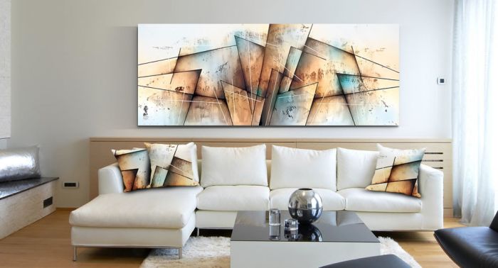 Os quadros grandes são perfeitos para salas grandes. Evite-os caso a sua sala seja pequena, para não desarmonizar o visual.