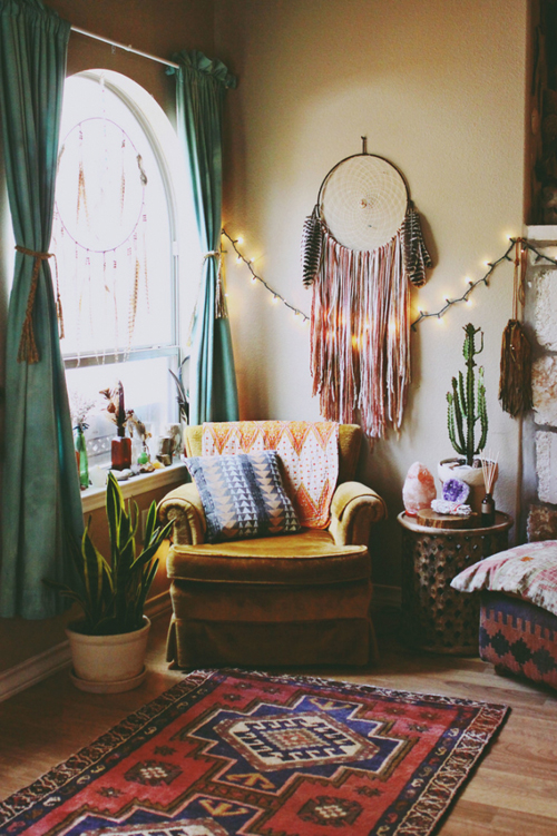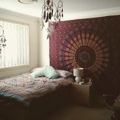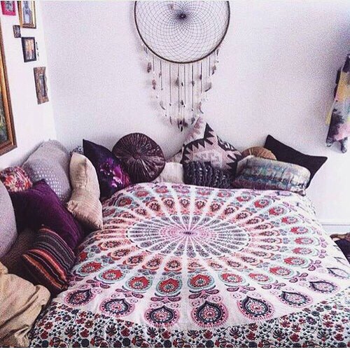 O décor hippie pode ser muito simples de ser criado se você optar também por um quarto pendendo para o minimalista, com poucas coisas nele, mas com estes itens remetendo ao estilo hippie. Com um tecido ou lenço que remeta ao estilo hippie e filtro dos sonhos você já compõe uma linda decoração para o seu quarto.