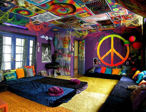 Normalmente são os quartos femininos que aderem ao estilo hippie, porém nada impede que os garotos também escolham este estilo para deixar o cantinho de descanso muito mais interessante. Cores intensas e símbolos do movimento hippie são alguns dos muitos elementos decorativos que você pode incorporar de forma fácil em seu quarto e já transformá-lo instantaneamente em um quarto pendendo para o estilo hippie.