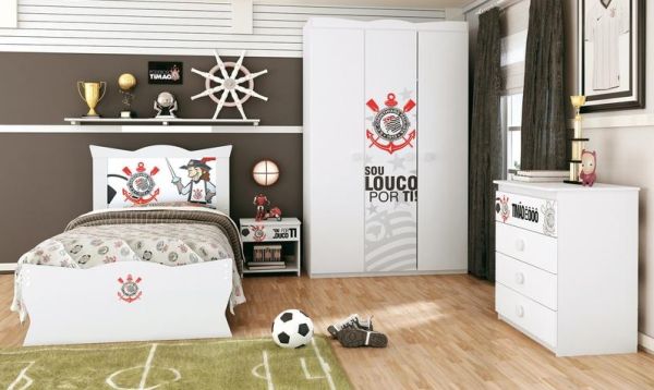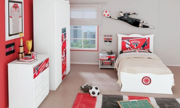 Os quartos com decoração de time de futebol são ótimas opções para quem quer extravasar sua paixão pelo time favorito (Foto: Divulgação)