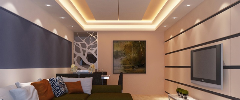 O gesso da sanca pode ser colorido e, juntamente com a iluminação, deixar a sua sala muito mais bonita.