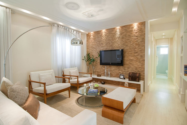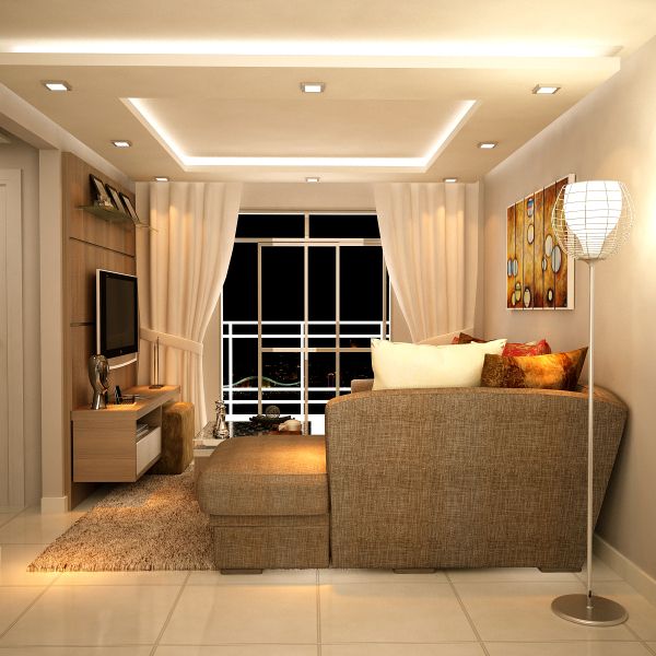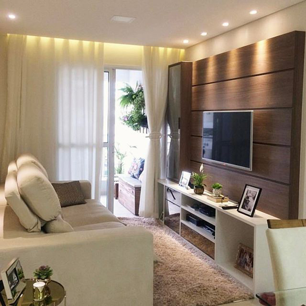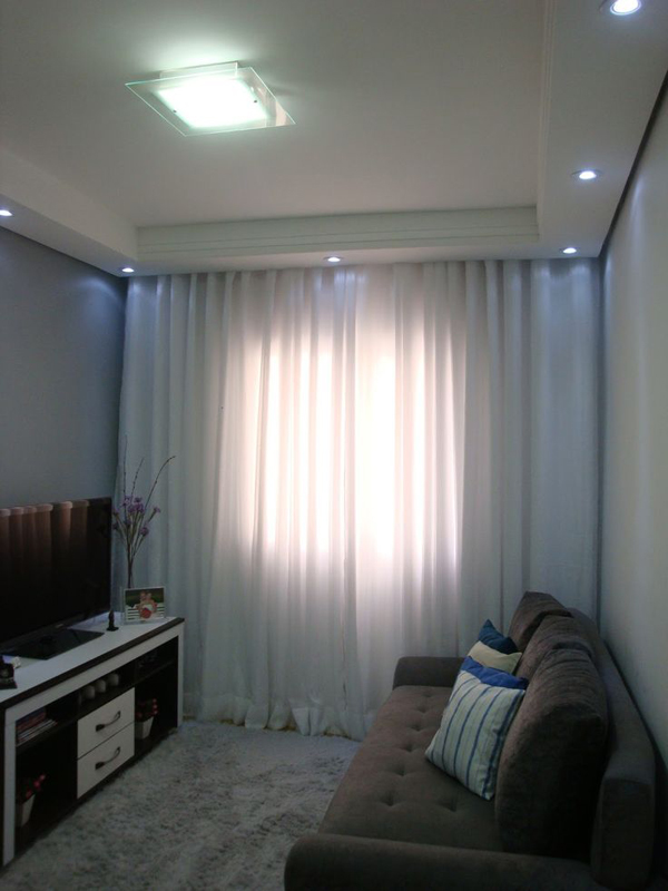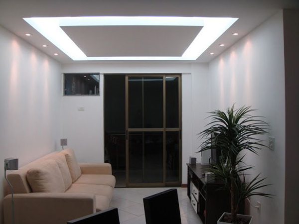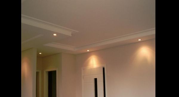 Qualquer tamanho de sala pode receber uma sanca de gesso e de qualquer tipo. Só vale empregar nestes espaços mínimos uma cor mais clara, para criar ilusão de ambiente maior, já que cores claras têm este poder.
