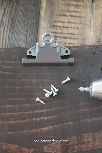 Logo após, assim que a tinta ou o verniz estiverem totalmente secos, fixe as presilhas para prancheta com parafusos e o auxílio de uma ferramenta específica.