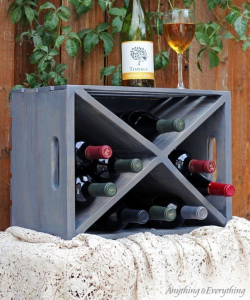 Suporte para vinhos de caixa de madeira é útil e também uma bela peça de decoração (Foto: myanythingandeverything.com)