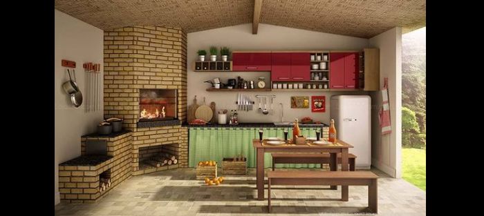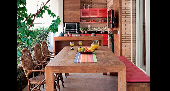 varanda rústica gourmet com vermelho