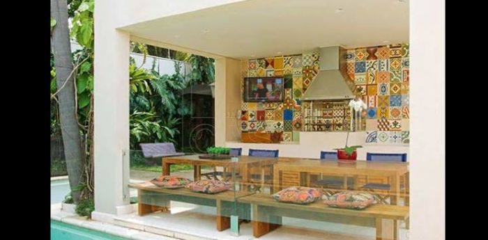 varanda rústica gourmet com azulejos estampados